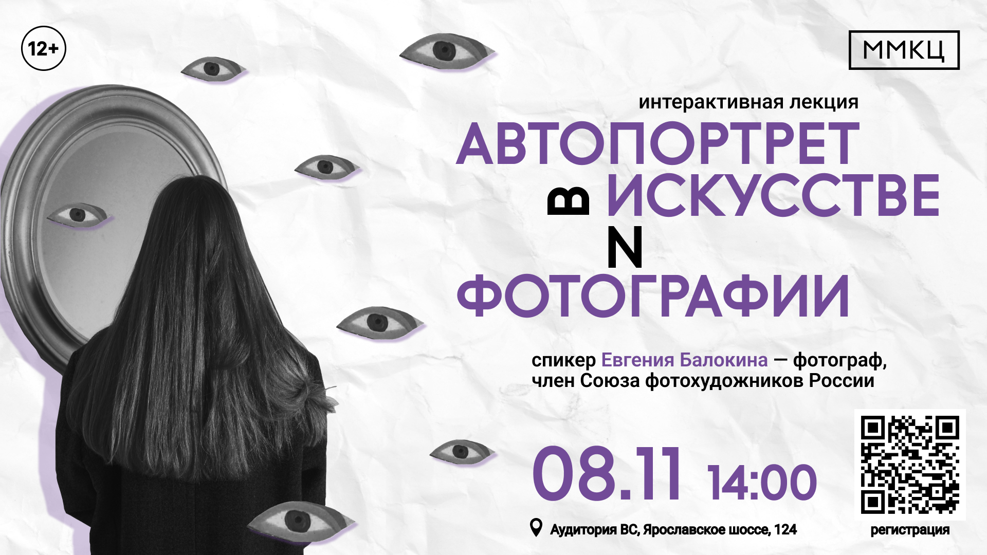Евгения Балокина — молодой фотограф, член Союза фотохудожников России, выпускница МГИК (бывш. МГУКИ). На интерактивной лекции будет рассмотрена тема, в которой говорится о важности автопортрета в фотографии и искусстве в целом.